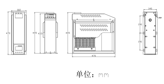 抗諧智能電容器外形尺寸及安裝尺寸(40kvar)