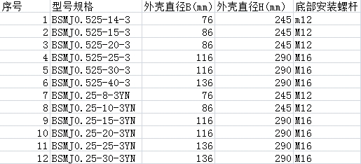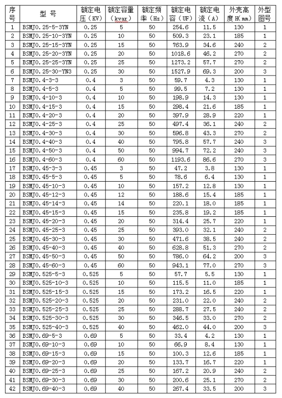 2、額定容量:1~60kvar ;