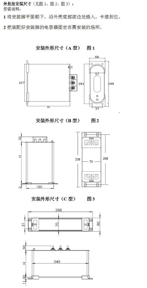 5、設(shè)置兩臺(tái)以上電容器時(shí),電容器之間間距不小于30mm,夏季溫度較高時(shí)應(yīng)采取有效的散熱措施。